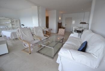 | | Spacious living room with a terrace overlooking the beach