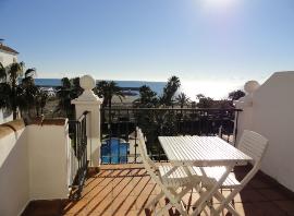 Front line beach one bedroom apartment in Villas andaluzas in Estepona town. with communal swimming pools, extensive gardens overlooking the beach, Fully fitted kitchen, sunny terrace overlooking the beach, bathroom, bedroom & living room with direct access to the beach... More from 290€ per week